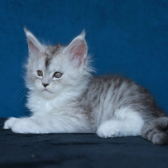 - Female Maine Coon Black Silver Mackerel Tabby & White