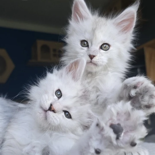 - Female Maine coon polydactyl black silver shaded & white