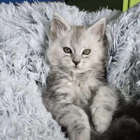 - Female Maine coon black silver blotched tabby