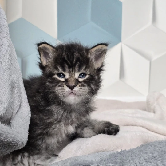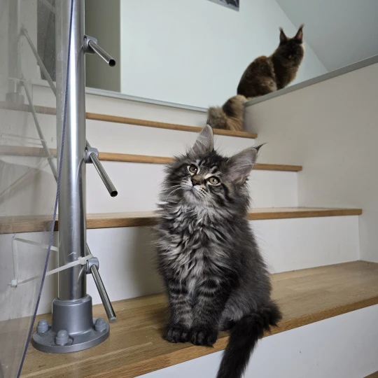 - Female Maine coon black silver mackerel tabby